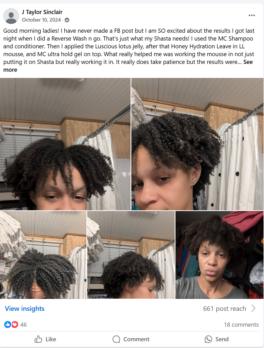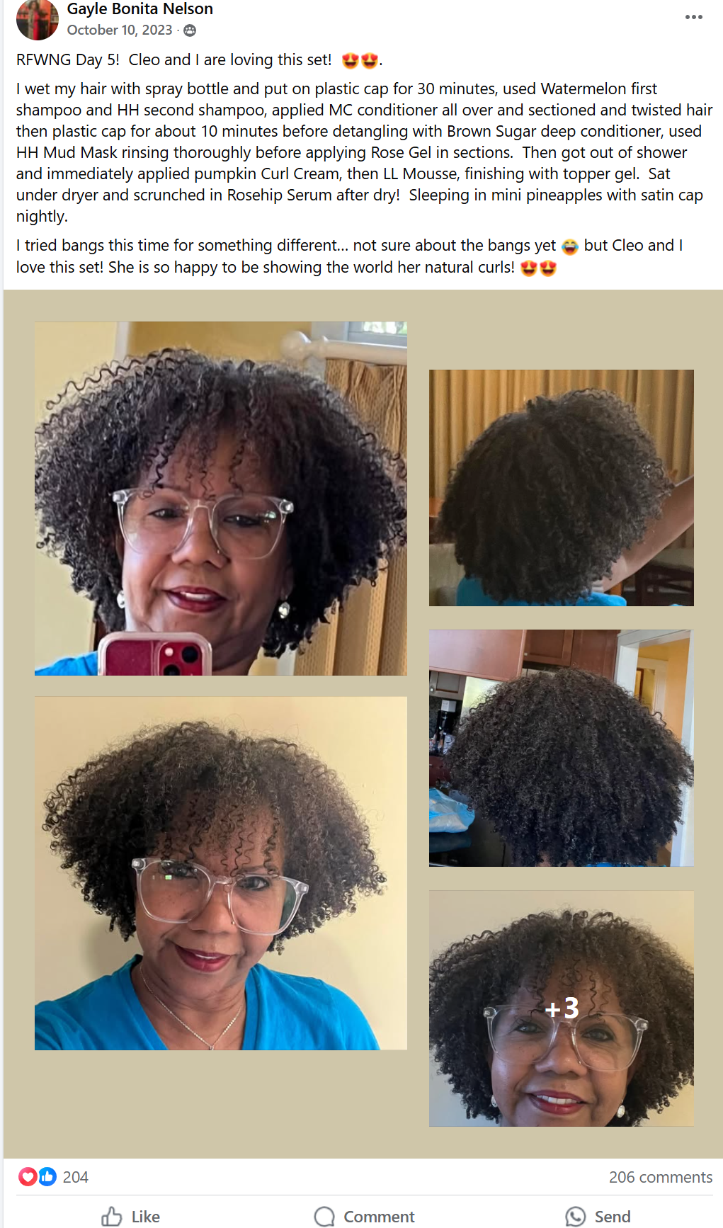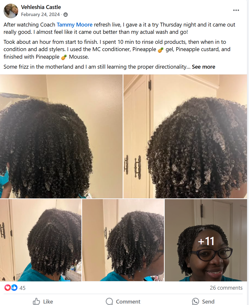 She's mastered her curls and gets compliments at the grocery store, work, church, and from friends and family.