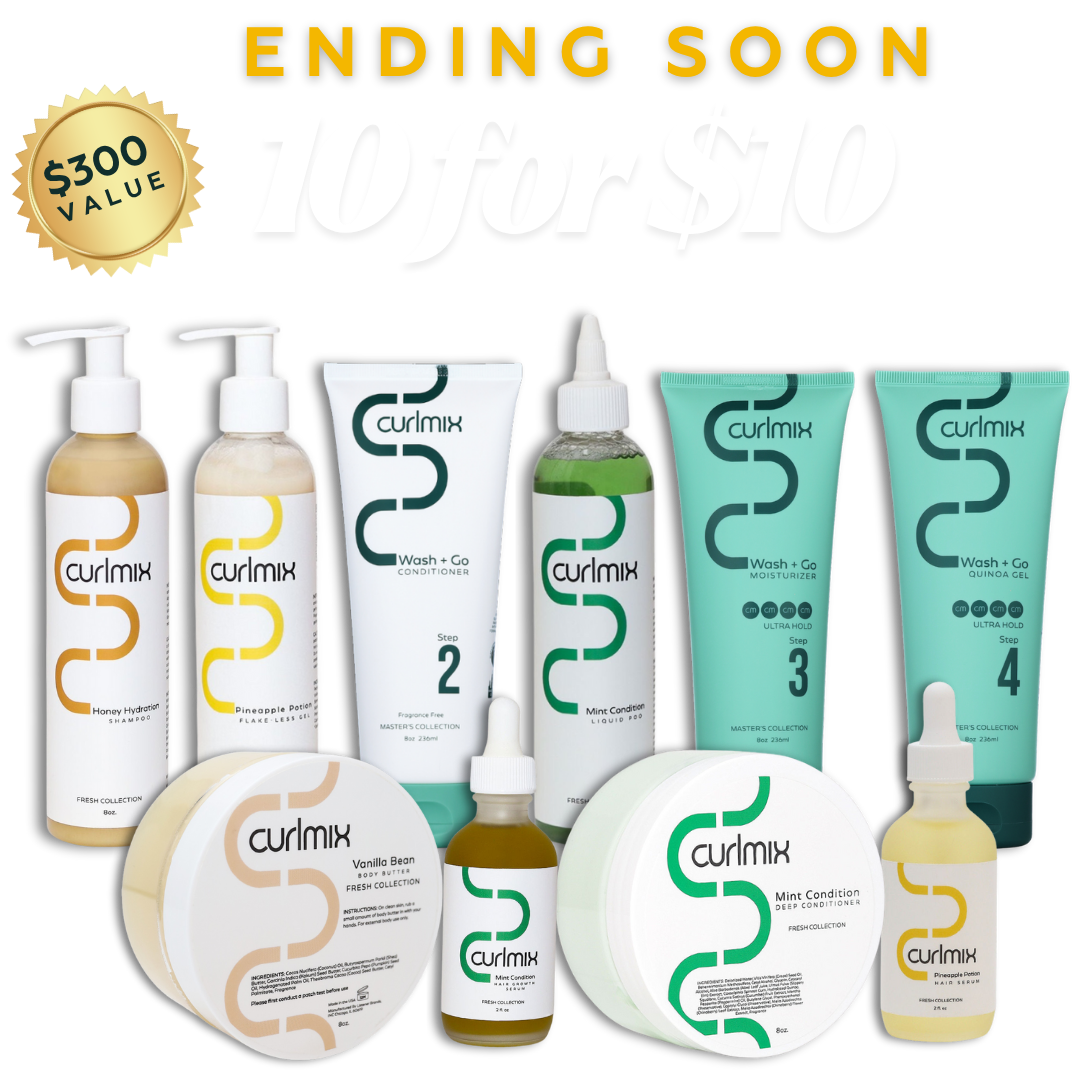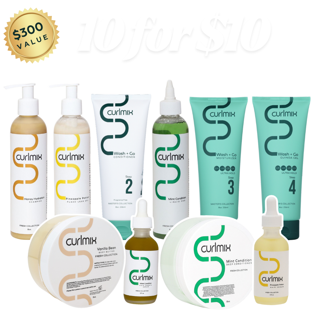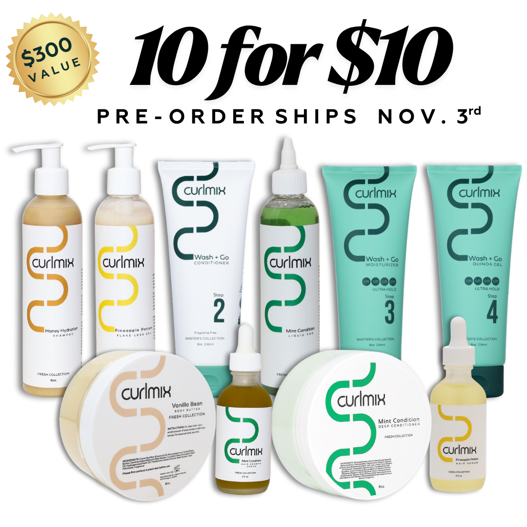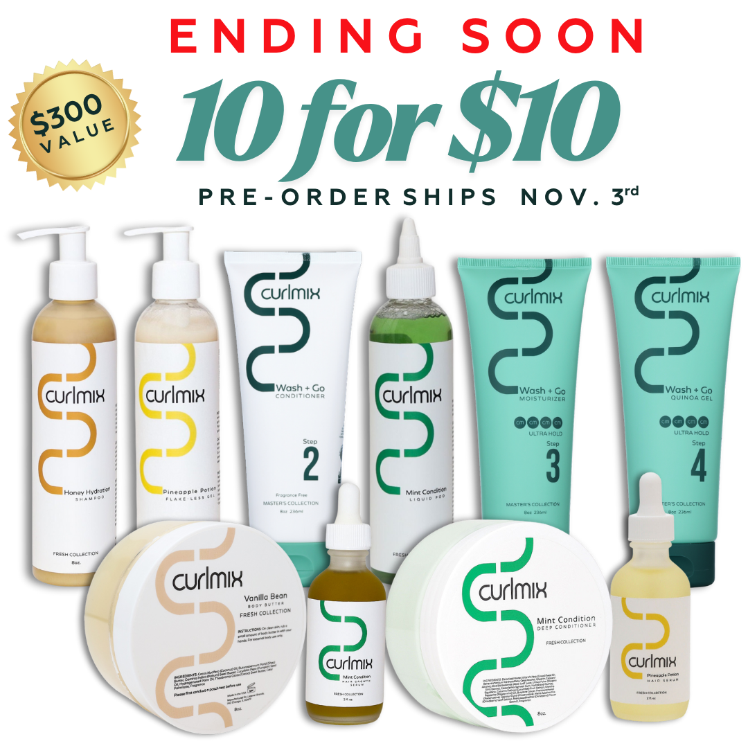 Celebrate 10 years of CurlMix with our biggest deal ever. Get 10 customer-favorite products for just $100 total—$10 each, full-size.