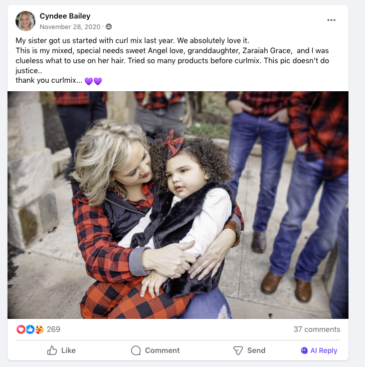 I created CurlMix to serve curly women who wanted clean, natural, safe, and effective hair products.
