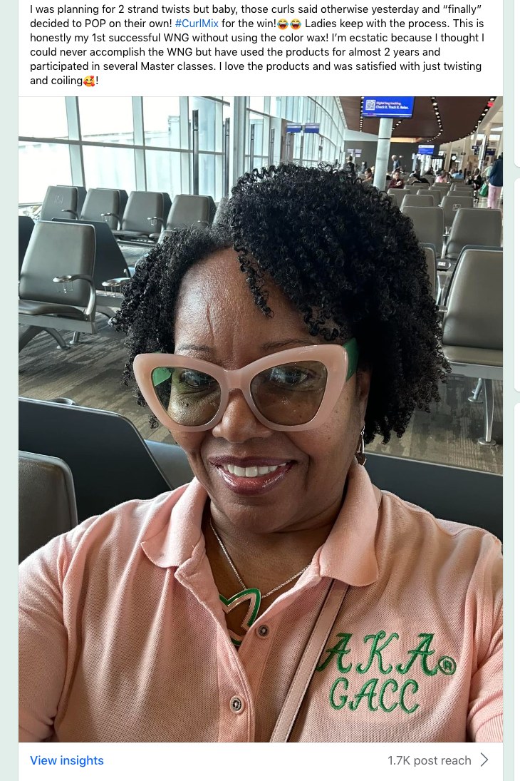Still learning this process and my hair!! Curlmix has made this so much easier by providing excellent products as well as excellent education with the monthly master classes. I am a customer for life!