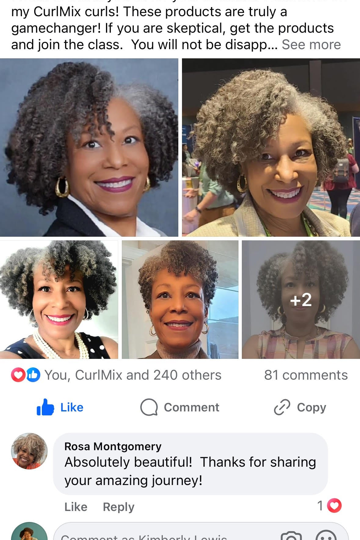 “My curly was stronger and my gray looked whiter. My husband even noticed and commented on how nice my hair looked. He doesn't notice anything, so I was shocked when he commented on how nice my hair looked. And when I went out people in my community noticed too.”