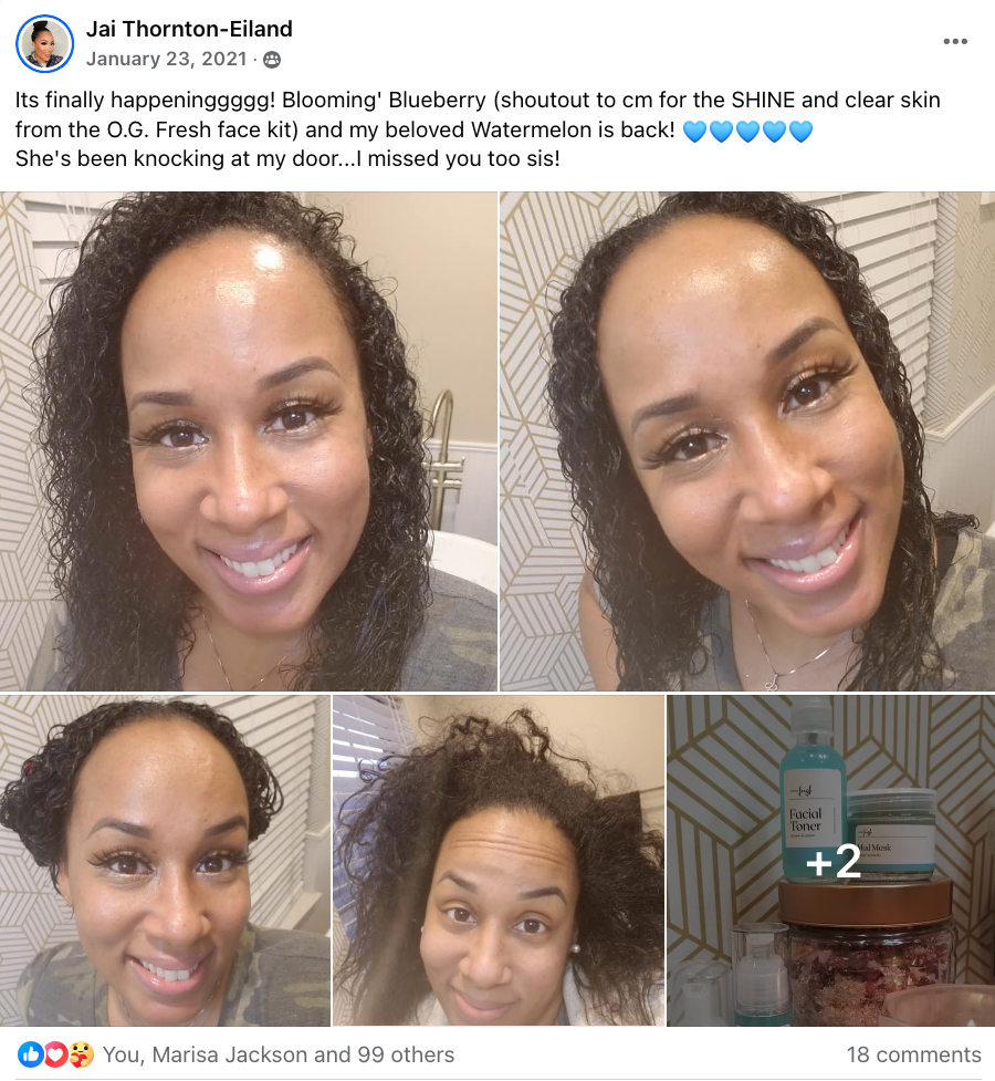 ⭐️⭐️⭐️⭐️⭐️ “It’s like a blueberry smoothie for my face. Obsessed with the glow!” – Nia J.