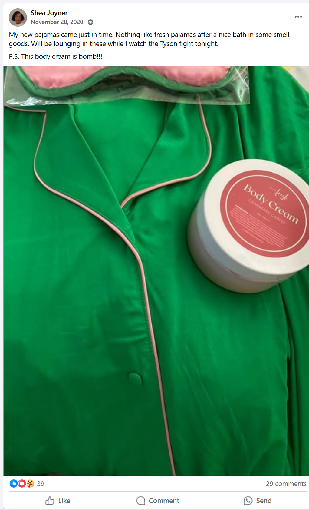 Ingredients: Deionized Water, Sodium Acrylates/Sodium Acryloyl Dimethyl Taurate Copolymer, Cetyl Alcohol, Glycol Stearate, Glyceryl Stearate, Caprylic/Capric Triglyceride, Vegetable Glycerin, Xanthan Gum, Panthenol, Squalane, Argania Spinosa (Argan) Oil, Butyrospermum Parkii (Shea) Butter, Vegetable Wax, Cetearyl Glucoside, Cocos Nucifera (Coconut) Oil, Lactobacillus/Vaccinium Macrocarpon (Cranberry) Fruit Ferment Filtrate, Phenoxyethanol, Caprylyl Glycol, Fragrance