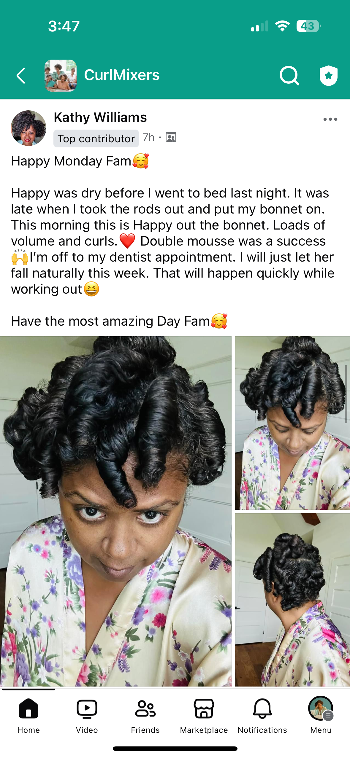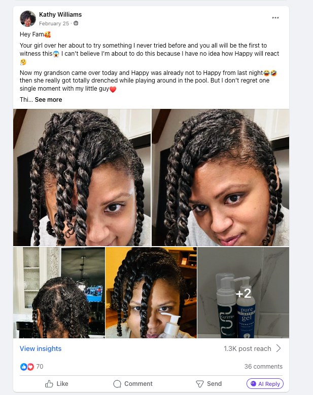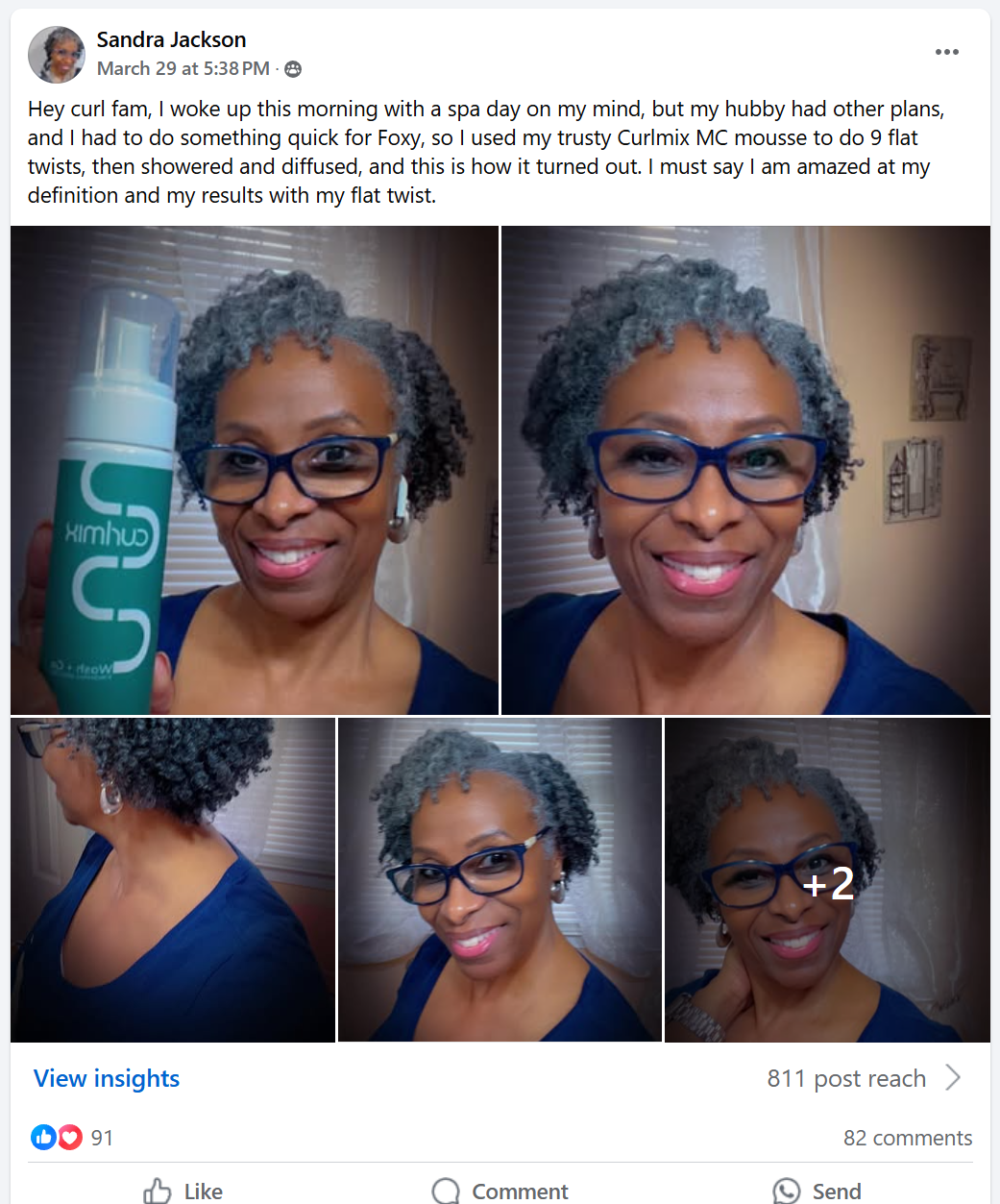She's mastered her curls and gets compliments at the grocery store, work, church, and from friends and family.