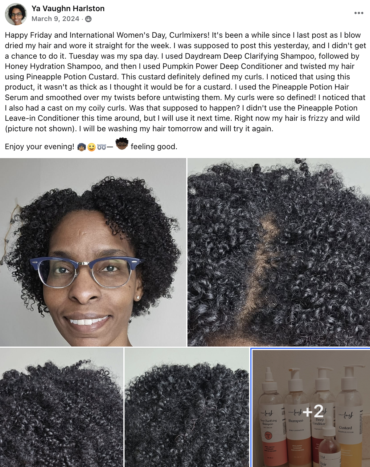 Style refresh: Use a tiny amount to revive dry curls or twist-outs on non-wash days