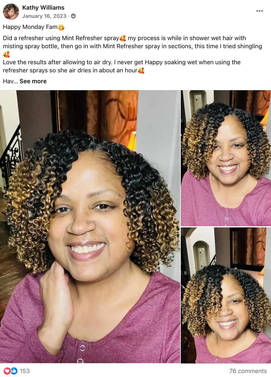 ⭐ “This spray is like a spa day for my curls! Minty, refreshing, and soooo hydrating.” – Nina T.