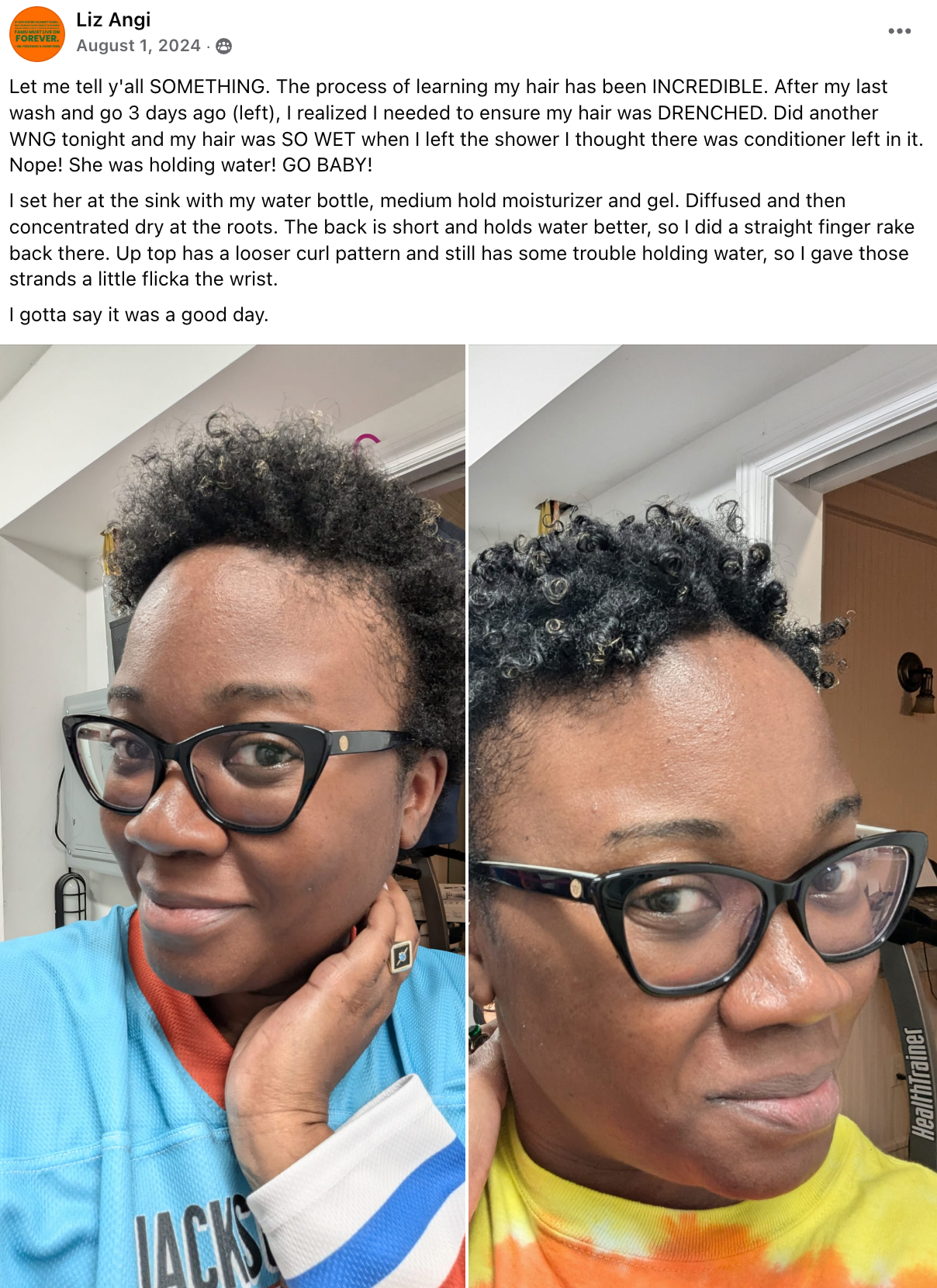 She's mastered her curls and gets compliments at the grocery store, work, church, and from friends and family.