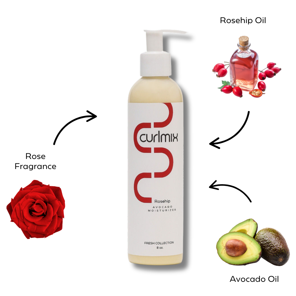 Ingredients: Deionized Water, Rosa Rubiginosa (Rosehip) Oil*, Persea Gratissima (Avocado Oil)*, Organic Vegetable Glycerin*, Behentrimonium Chloride, Hydroxypropyl Guar, Cetearyl Alcohol, Polyquaternium-37, Phenoxyethanol, Caprylyl Glycol, Fragrance (Phthalate Free)