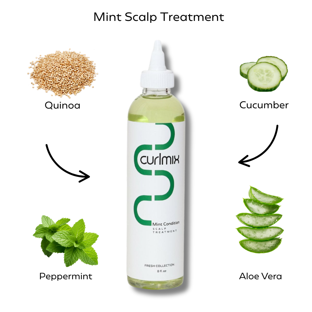 This refreshing combo of peppermint and cucumber extract brings instant cooling relief, reduces flakes, and hydrates deeply—one drop at a time. Perfect for wash day AND between refreshes, the Mint Condition Scalp Treatment keeps your scalp balanced and your curls thriving.