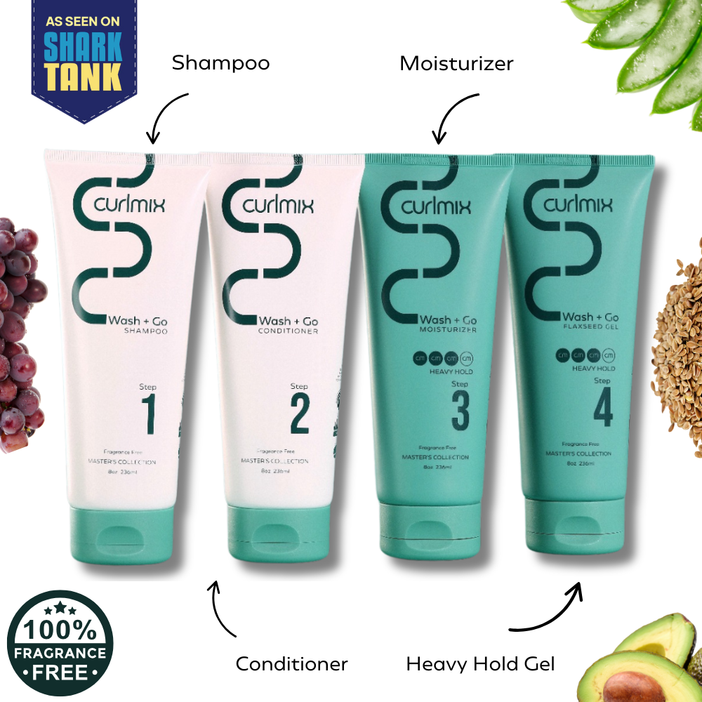 CurlMix Wash & Go Kit – Heavy Hold Formula for Long-Lasting, Defined Curls | Fragrance-Free (4 items)