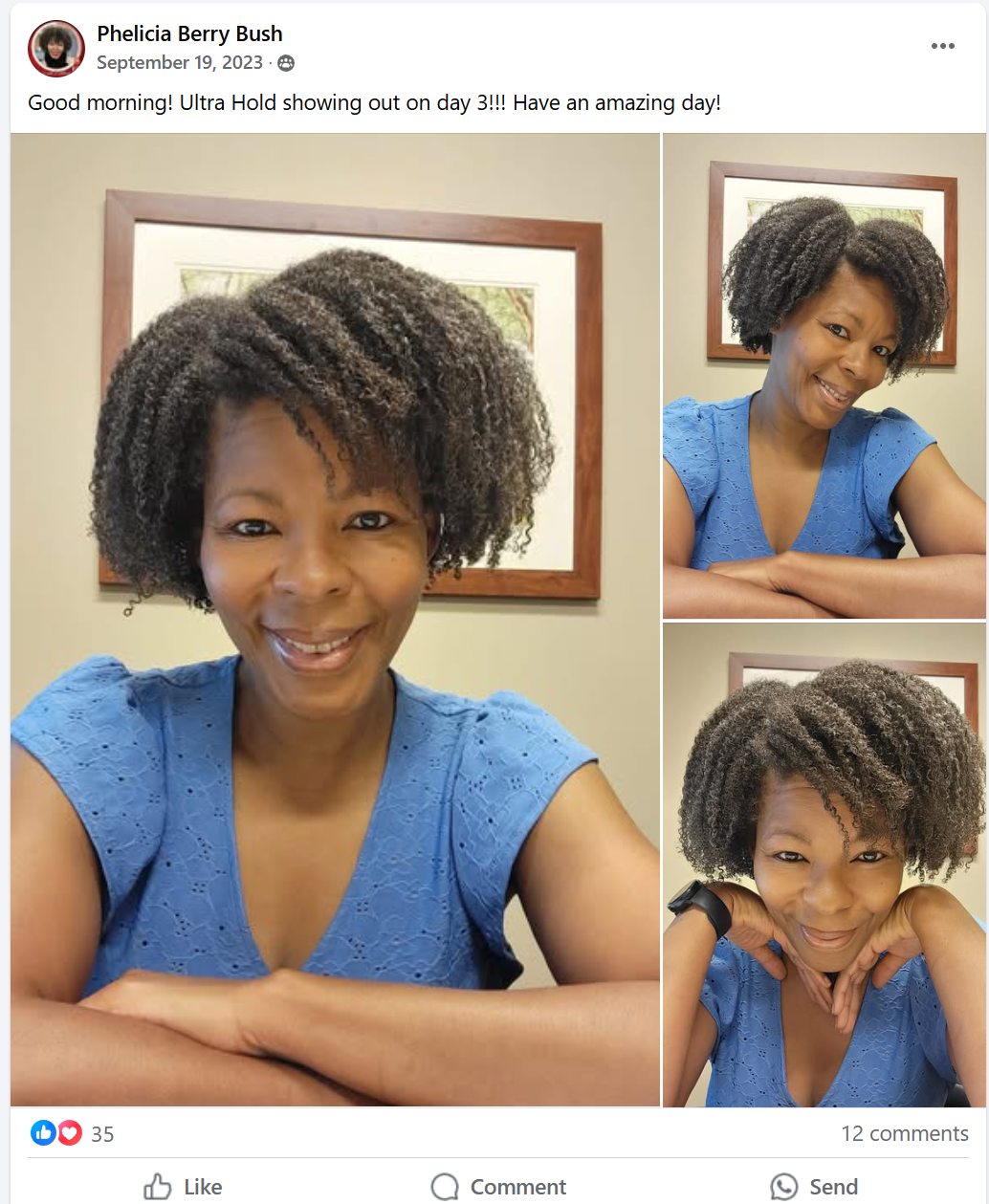 She's mastered her curls and gets compliments at the grocery store, work, church, and from friends and family.
