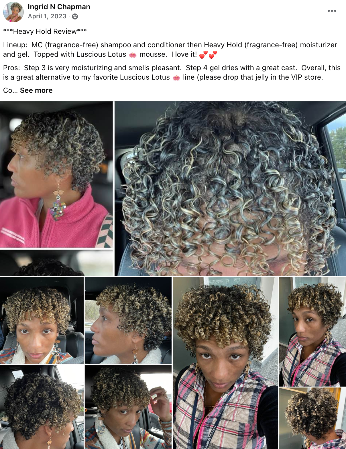 She's mastered her curls and gets compliments at the grocery store, work, church, and from friends and family.